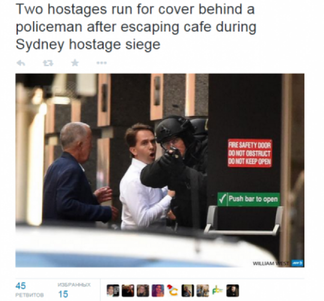 Террорист потребовал встречи с премьер-министром страны Тони Эбботом, а также передать ему флаг Исламского государства.