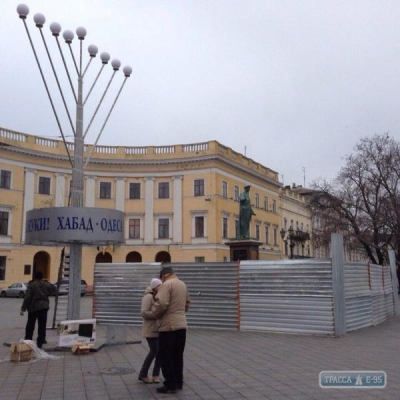 Большой девятисвечник появился в центре Одессы в честь еврейского праздника Ханука, передает Трасса Е-95.