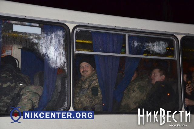 Автобус с военнослужащими прибыл примерно в 21.00, – передает корреспондент НикВестей с места событий.