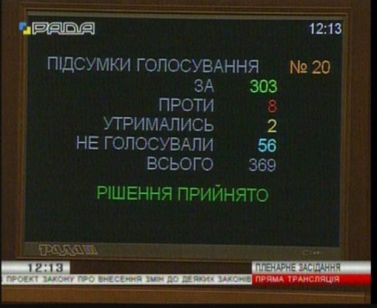 За принятие законопроекта за основу и в целом проголосовали 303 депутата. Всего против проголосовали 8 нардепов, воздержались – 2, не голосовали – 56.