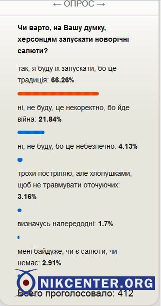В преддверии новогодних праздников официальный сайт Херсонского городского совета провел онлайн-опрос общественного мнения. Тема опроса: «Чи варто, на Вашу думку, херсонцям запускати новорічні салюти?».