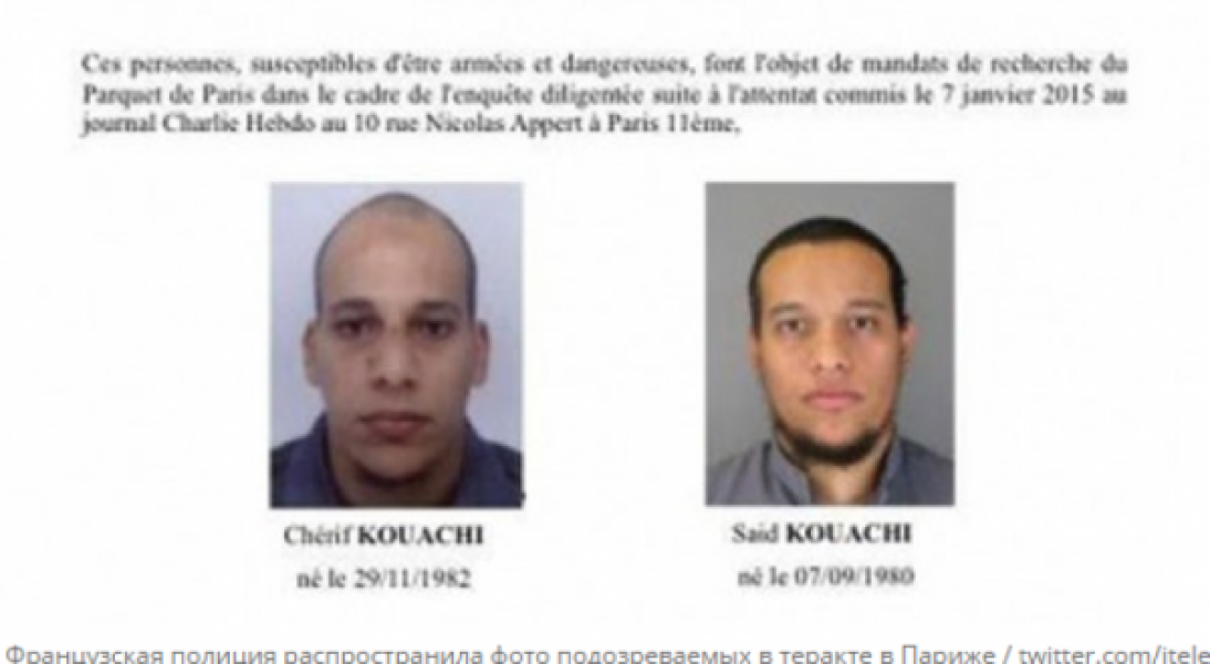 Французская полиция распространила фото двух братьев, подозреваемых в теракте на редакцию парижского журнала Charlie Hebdo.