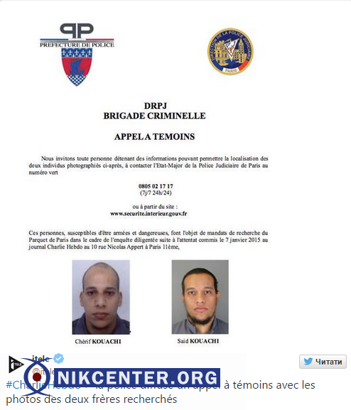Речь идет о 34-летнем Саиде Кауши и его 32-летнем брате Шерифе, передает ТСН со ссылкой на France-Presse.