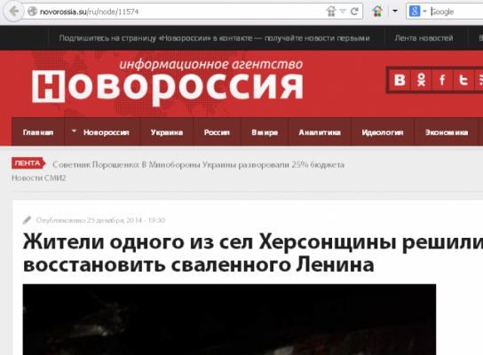 Бурную дискуссию в соцсетях вызвало решение Розолюксембургского сельсовета (центр — в селе Федоровка) Каховского района Херсонской области восстановить в селе памятник Ленину, которое стал поводом для информации на сайте «Информационное агентство Новороссия».