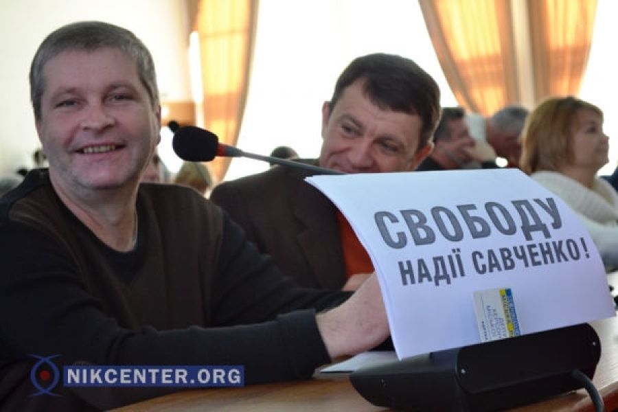 «Руководство нашей партии приняло такое решение: до освобождения Савченко все депутаты местных советов от ВО «Батьківщина» будут ходить на сессии в футболках с тем призывом, который вы видели. Однако в Херсоне нет возможности оперативно изготовить футболки с таким принтом. Потому было принято другое решение», — рассказал депутат горсовета Станислав Трошин.