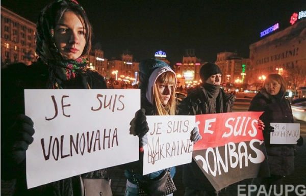 Напомним, 13 января недалеко от Волновахи террористы обстреляли автобус с мирными жителями. Погибли 12 человек, еще 18 ранены. Акция называется по аналогии с французской «Je suis Charlie» («Я – Шарли»), террористы совершили обстрел редакции журнала, в результате которой тоже погибли 12 человек. Тогда миллионы французов вышли с таким девизом на улицы, чтобы отстоять свои ценности и показать, что террористам их не запугать.