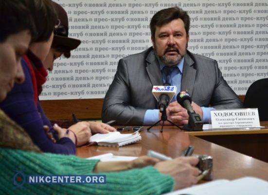 Бывший и. о. ректора Херсонского национального университета Александр Ходосовцев так и не рассказал журналистам о сути конфликта, по поводу которого он провел пресс-конференцию, прошедшую в пресс-клубе «Новый день».