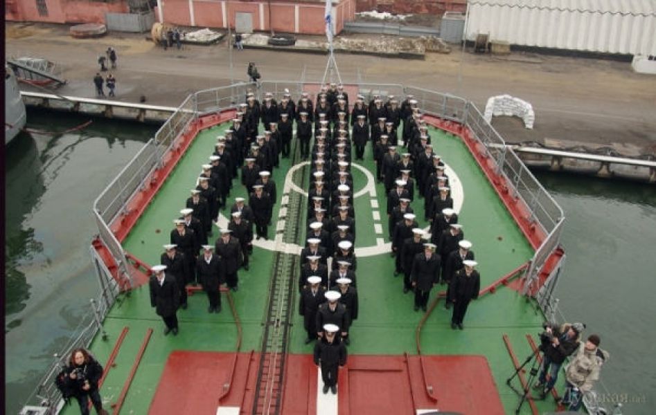 Сначала в присутствии личного состава флагмана Военно-морских сил Украины фрегата «Гетман Сагайдачный» была открыта мемориальная доска в память об участниках АТО, погибших при исполнении воинского долга.
