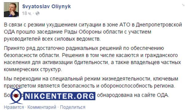 Об этом написал на своей странице в Facebook заместитель главы Днепропетровской ОГА Святослав Олийнык.