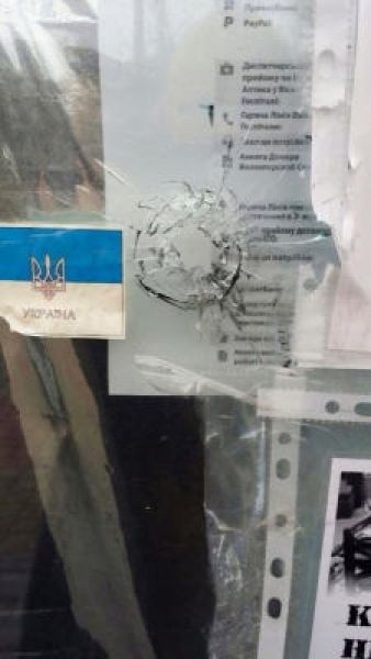 По ее словам, в стеклянных дверях офиса на бульваре Верховной Рады 21Б волонтеры обнаружили четыре отверстия.