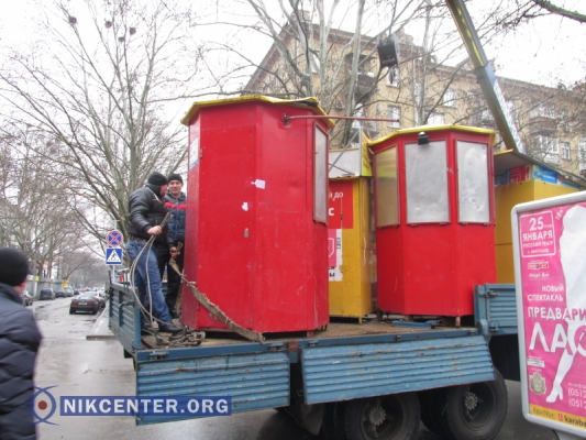 Мэр Николаева Юрий Гранатуров заявил, что сегодня ночью городские власти на ул. Советской демонтировали 17 киосков "Позвоните".