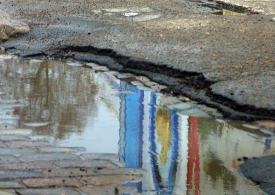 На Французском бульваре коммунальщики частично сняли булыжную мостовую, а ямы засыпали бетонной смесью. Несмотря на постоянные ремонты, дорожное полотно бульвара в отвратительном состоянии. Местные жители обвиняют крупногабаритный транспорт в полном разгроме покрытия. Именно по этому пути часто проезжают массивные грузовики, обслуживающие новострои. Повсюду — лужи и пробоины, в которые все норовят угодить колеса спешащих авто.
