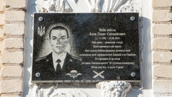 Мемориальная доска в память о бойце 25-й отдельной воздушно-десантной бригады Денисе Козе установлена на фасаде средней школы села Чернобаевка Херсонской области.