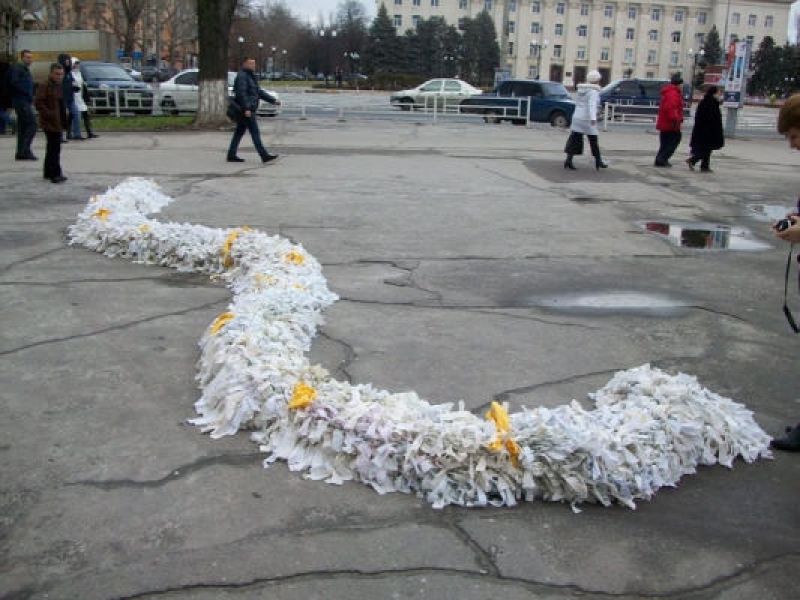 Херсонские школьники сплели для военных в зоне АТО огромную маскировочную сеть