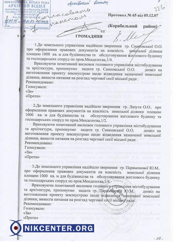 — За каждый такой земельный участок нам предлагали 20000 гривен, чтобы эти средства были использованы для благоустройства Корабельного района … Они сказали, что если не будет общественного контроля, то в принципе это дело может где-то исчезнуть в сетях судебной системы, — рассказал адвокат и общественный активист Руслан Пересунько.