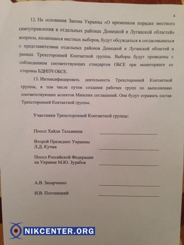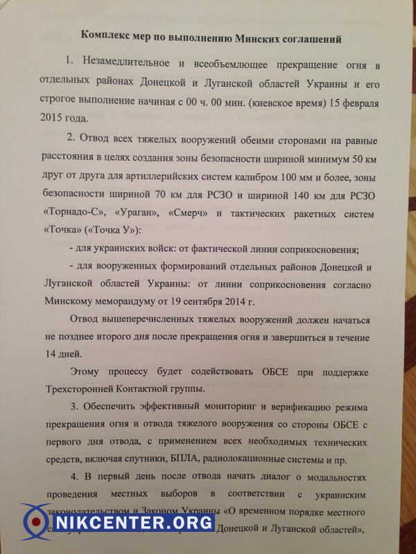Контактной группой подписан документ, который называется "Комплекс мероприятий, направленный на имплементацию Минских договоренностей".