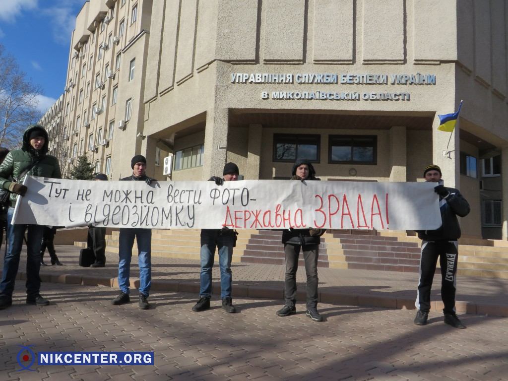 В Николаеве родственники и друзья задержанного российского журналиста пикетировали СБУ и прокуратуру