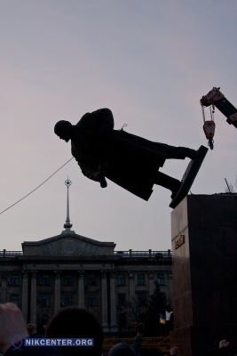 22 февраля 2014 года, спустя 23 года после обретения Украиной независимости, в Николаеве снесли памятник Ленину на центральной площади города. Снос сопровождался жестоким противостоянием между гражданами, николаевцы чуть ли не дрались между собой. В тот день на площади собрались и сторонники демонтажа статуи вождя, и верные приверженцы коммунистической идеологии, так называемой «красной» религии. Памятник Ленину стоял в самом центре города с октября 1957 года.
