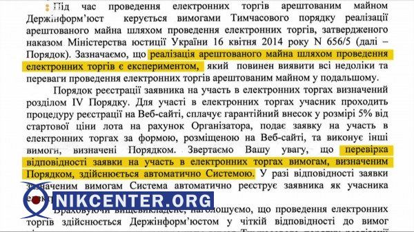 «Информюст» в своем ответе на наш запрос сообщил, что «реализация арестованного имущества путем проведения электронных торгов является экспериментом … Проверка соответствия заявки на участие в электронных торгах требованиям, определенным Порядком, осуществляется автоматически Системой».
