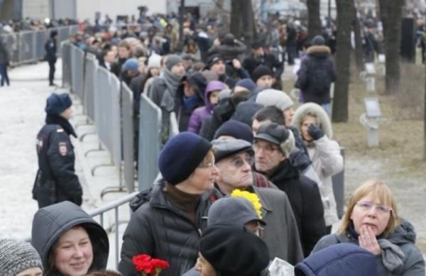 Как передает собственный корреспондент УНИАН в РФ, у Сахаровского центра, где проходит траурная церемония, образовалась очередь в несколько сотен метров.