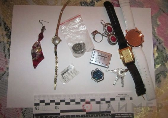Во время осмотра вещей задержанного правоохранители обнаружили в его рюкзаке пять мобильных телефонов, золотые изделия, бижутерию, часы и деньги. Некоторые из вещей узнал хозяин дома, который к тому времени уже вернулся домой.