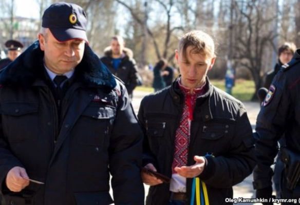 Ранее, в Симферополе утром, 14 марта, задержали активиста Александра Кравченко за украинскую символику.