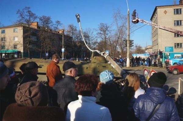 Агентство "Украинские новости" со ссылкой на свой источник в горсовете добавляет, что трагедия произошла в результате потери бронемашиной управления. Перед этим, утверждает источник, люди забрасывали колонну украинской бронетехники камнями.