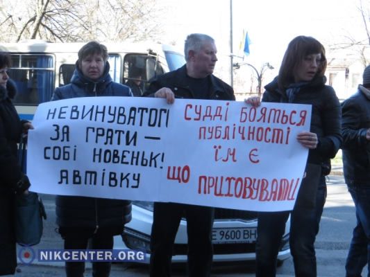 Сегодня, 17 марта, перед зданием Николаевского апелляционного суда прошел пикет. Его участники – правозащитники, активисты, родственники – требовали отменить решение Корабельного суда, вынесенное судьей Еленой Кутурлановой 8 октября 2014 года.