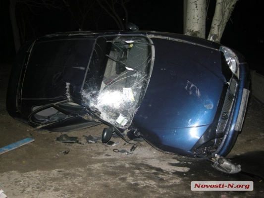 Ночью в пятницу, 20 марта, примерно 3,45, на пересечении проспекта Ленина и ул. 8 Марта в Николаеве автомобиль Daewoo Lanos врезался в рекламный щит и перевернулся.