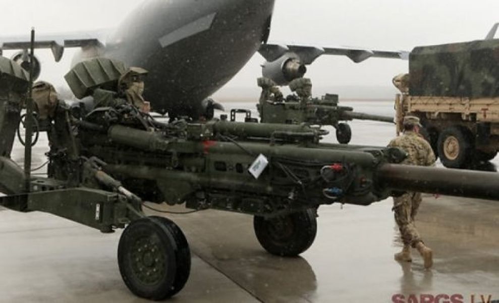 В Ригу прибыли более 80 солдат Мичиганской национальной гвардии США. Самолеты также доставили четыре 155-миллиметровых гаубицы.