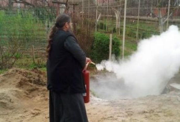 Кроме инструктажа спасатели еще и обучали практическому использованию первичных средств пожаротушения. Каждый из присутствующих представителей епархии мог лично и собственноручно попробовать потушить условный пожар. Итак, общение получилось не только интересным, но и поучительно-полезным. Ведь одно дело услышать, а другое — практически попробовать.