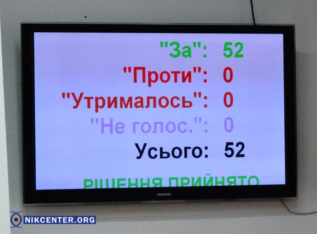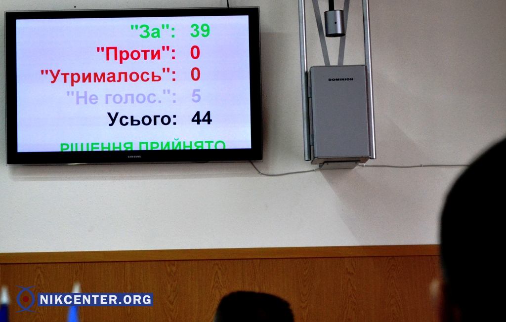 «За» проголосовали 39 депутатов, «против» — ни одного. Не было и воздержавшихся. Не принимали участие в голосовании пять зарегистрированных депутатов, из которых три — представители Коммунистической партии Украины, один — от Партии регионов, один — внефракционный.
