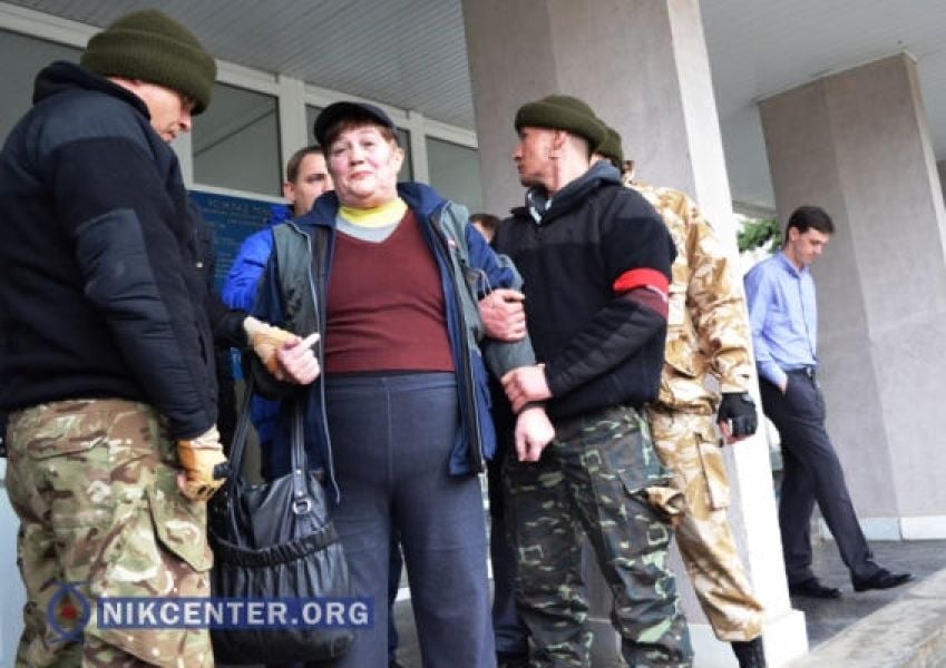 Херсонский «Правый сектор» выдворил с сессии горсовета Ларису Щепеткину, руководителя органа самоорганизации населения жилмассива Забалка, намеревавшуюся выступить против передачи в частное владение участка земли на территории жилмассива.