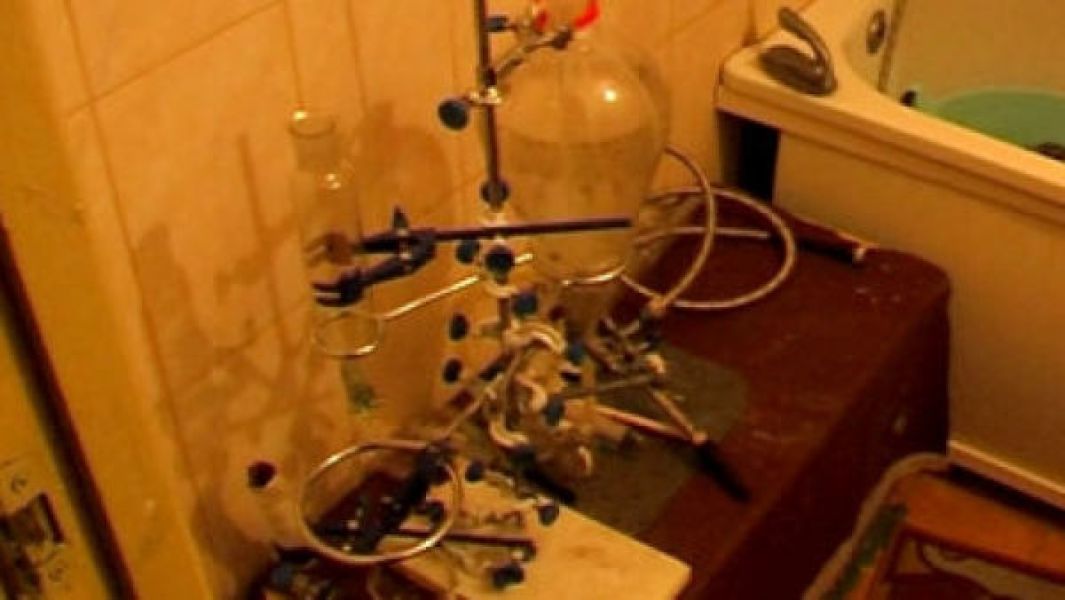 В ходе осмотра домовладения его матери правоохранители обнаружили нарколабораторию — оборудование и химические реактивы, используемые для приготовления синтетического наркотика. Также были изъяты пробирки, медицинские колбы, посуда с остатками порошкообразного вещества, бутылки с прекурсорами.