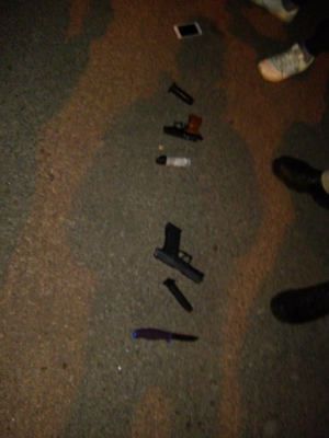 Водитель авто оказался пьяным, но самое главное, при осмотре автомобиля у него обнаружили травматические пистолеты, переделанные под боевые, газовый баллончик и нож.