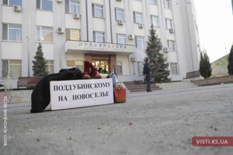 Под зданием Херсонской областной прокуратуры состоялся пикет, целью которого было собрать гуманитарную помощь для «сиротского» прокурора Богдана Подубинского.
