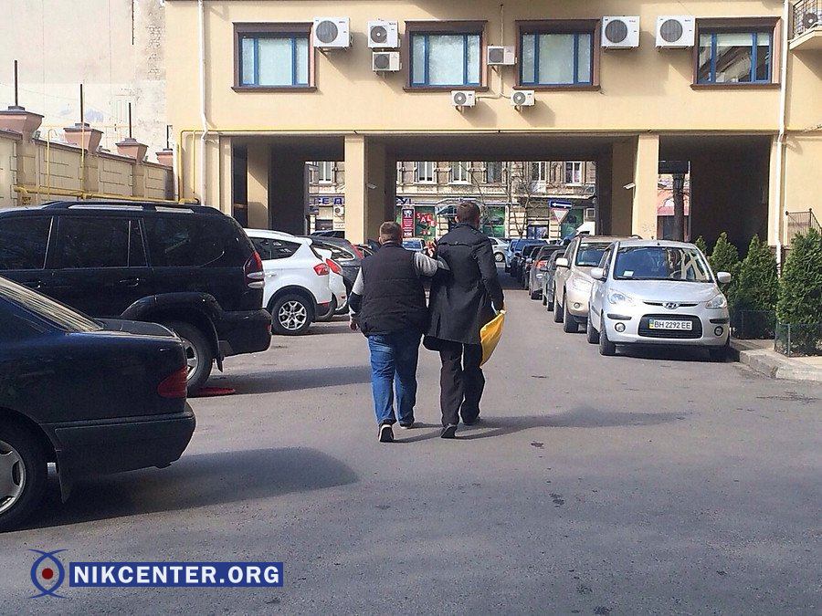 Лидер организации «Автомайдан» Евгений Резвушкин задержал мужчину, который пикетировал вместе с Верой Шевченко и отвел в штаб «РГБ» на Жуковского.