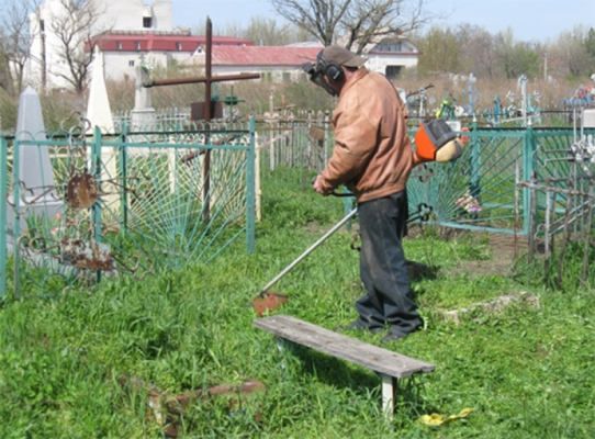 Порядок на старом кладбище по ул. Молодежной наводят около 150 человек. Работают 20 мотокосилок и 4 трактора. С понедельника, 27 апреля, задействуют и дробилку.