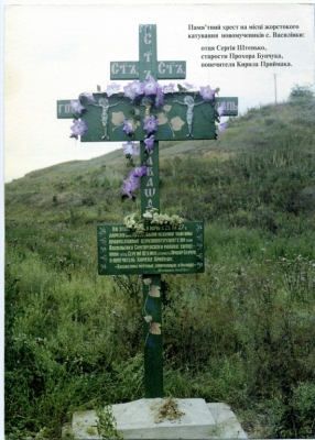 Но их до тюрьмы не довезли. Мы сегодня доподлинно не можем сказать, что случилось. Только отец Сергий, Кирилл и Прохор были убиты. Убиты страшно. Священник, может быть, предчувствуя близкую смерть, начал креститься. Большевики, чтобы остановить его, стали рубить руки священника саблями. Прохор Бунчук пытался защитить отца Сергия и был застрелен на месте. Чекисты стали избивать заключенных. Священнику выбили зубы, отрезали уши, кололи саблями тело, выкололи глаза, затем распороли живот и намотали внутренности на коловорот колодца. Кириллу Приймаку открутили голову. Едва присыпав тела землей, убийцы уехали.