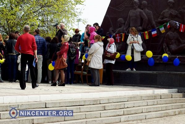 В Херсоне на набережной, возле памятника первым корабелам, прошел публичный мастер-класс по рисованию на воде «ЄСтвори в Україні».