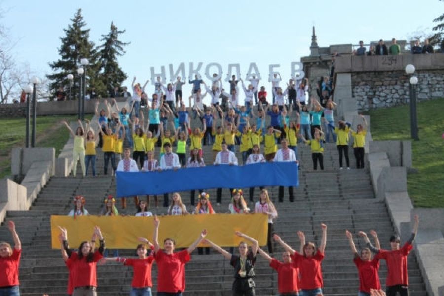 «Здоровые люди – здоровая нация» — под таким слоганом сегодня, 28 апреля, около 300 николаевских студентов вышли на спортивный флешмоб «Руханка» в центре города.