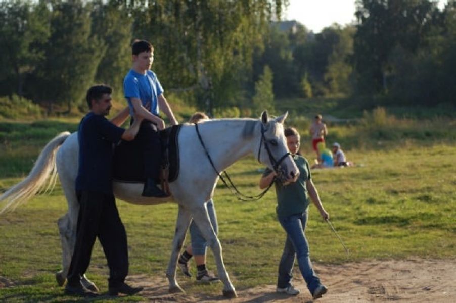 Они уже дважды приезжали к лошади вместе с психологом и привозили сладости, чтобы угостить Ская. Во время занятий каждый желающий может прокатиться несколько кругов на лошади, которая управляется длинным поводом — кордом. Одновременно ребята получают и важный тактильный контакт с лошадью. Такое общение в комплексе с другими методиками (механотерапия, ЛФК, массаж, психоанализ, арт-терапия, методика кататимных образных переживаний по Лейнеру и т.п.) уже дало заметные результаты: психоэмоциональное состояние бойцов стабилизируется, настроение улучшается, происходит адаптация.