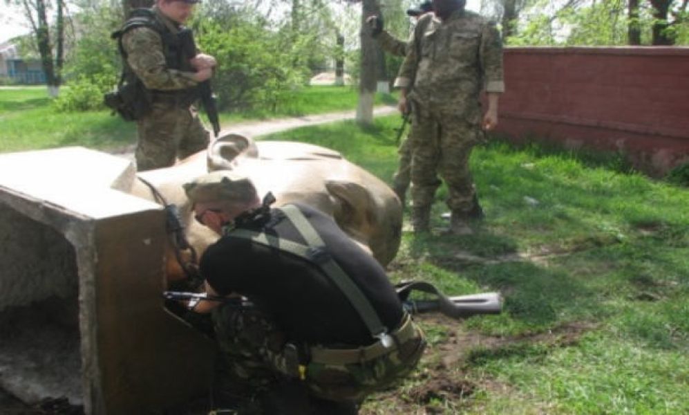 В селе Петровка в Луганской области бойцы батальона «Айдар» снесли памятник Ленину.