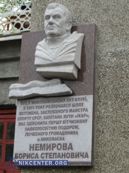 Сегодня, 2 мая, на здании Николаевского областного яхт-клуба открыли мемориальную доску заслуженному мастеру спорта СССР по парусному спорту, почетному горожанину Борису Немирову. Под его руководством украинская яхта «Икар» обошла вокруг света и первая под флагом Украины достигла берегов американского континента.