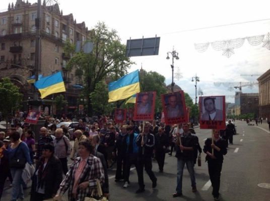 В центре Киева прошло шествие по случаю годовщины пожара в одесском Доме профсоюзов.