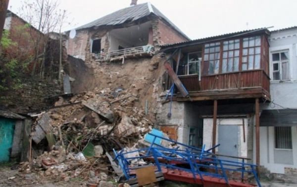Кроме того, по информации ГосЧС, в результате обвала этой стены были разрушены два кирпичных гаража, еще один поврежден. Также частично разрушена пристройка к дому по ул. Фрунзе, и полностью разрушены деревянные лестницы, ведущие на второй этаж, где проживает семья с тремя детьми. Они эвакуированы и находятся у родных.