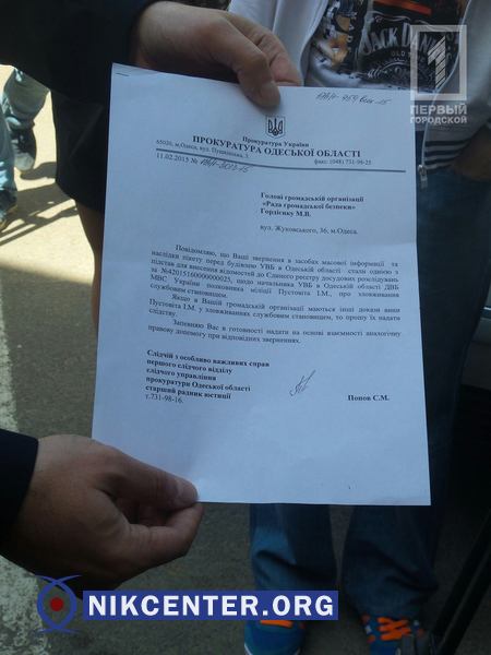 6 мая представители оперативного штаба патриотических сил Одессы потребовали отстранить начальника Управления внутренней безопасности в Одесской области подполовника милиции Игоря Пустовита от занимаемой должности. Накануне 5 мая чиновник вернулся на работу с больничного.