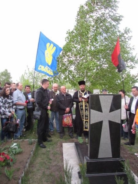 Деньги на памятник собрали первомайские националисты. Священник греко-католической церкви отец Виктор освятил памятник и совместно с общиной помолился за борцов за украинское государство.
