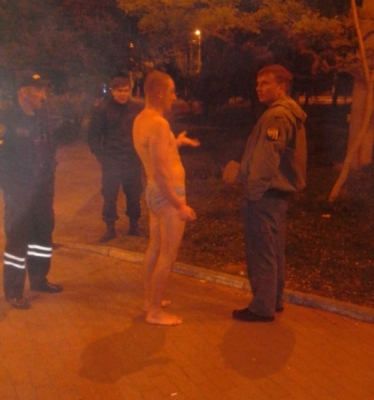 Прошлой ночью активисты вместе с патрулем задержали около ж/д вокзала пьяного голого мужчину.