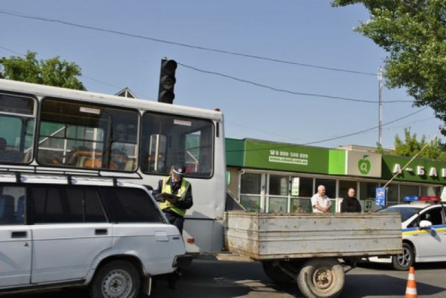 Водитель автомобиля ВАЗ — 2104 с прицепом, по всей вероятности, не избрал безопасный интервал движения и столкнулся с маршруткой.